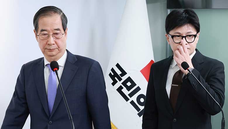 o primeiro-ministro Han Duck-soo e o líder do partido governista, Han Dong-hoon